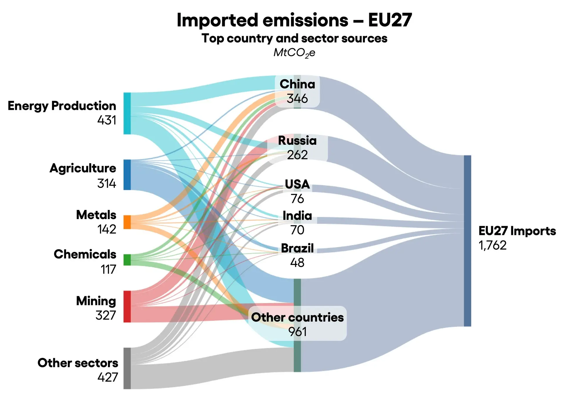 He also provided data on the countries that have become leaders in terms of imported CO2 emissions to the EU, and the distribution of these emissions by sector: