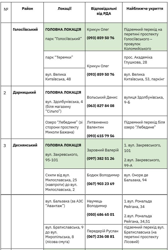 For participants’ safety, the list of locations includes information about the nearest shelters.