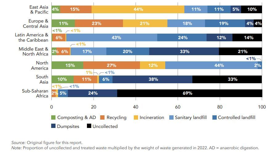 The World Bank report shows that in high-income countries, the waste collection rate is close to 100%. The situation is worst in low-income countries, especially in Sub-Saharan Africa, where only 31% of waste is centrally collected.