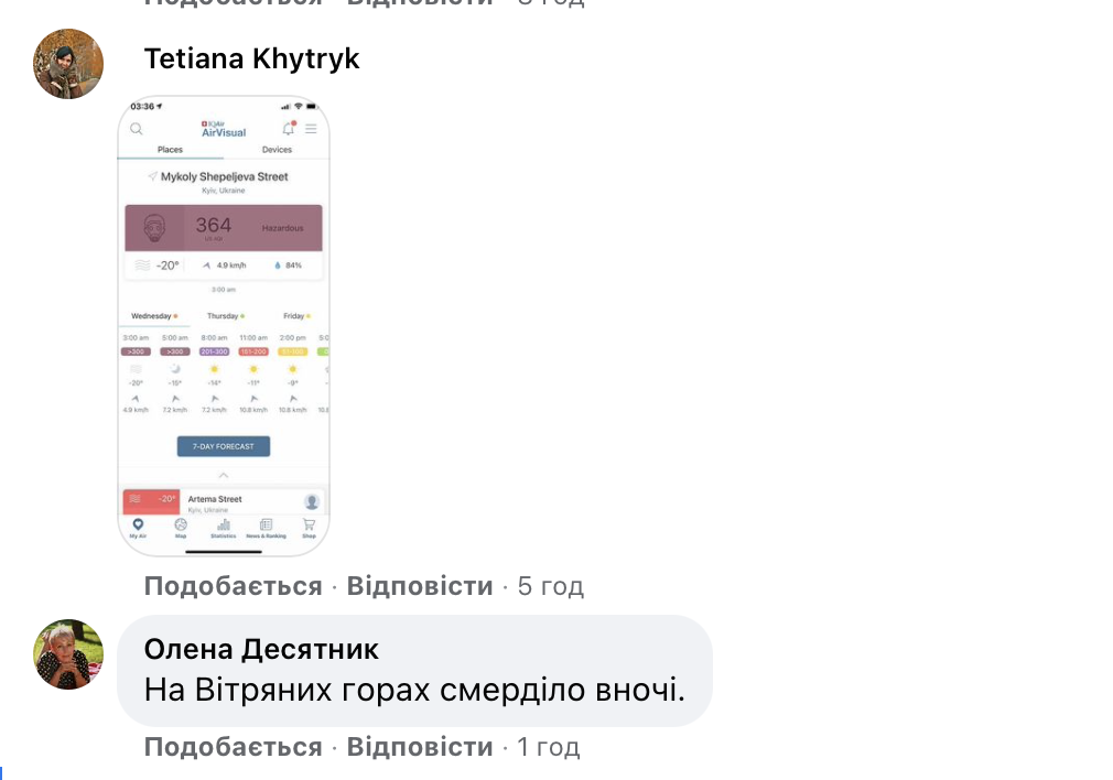 Несколько киевлян в комментариях подтвердили, что им трудно дышать на улице и они чувствуют странный запах в воздухе.