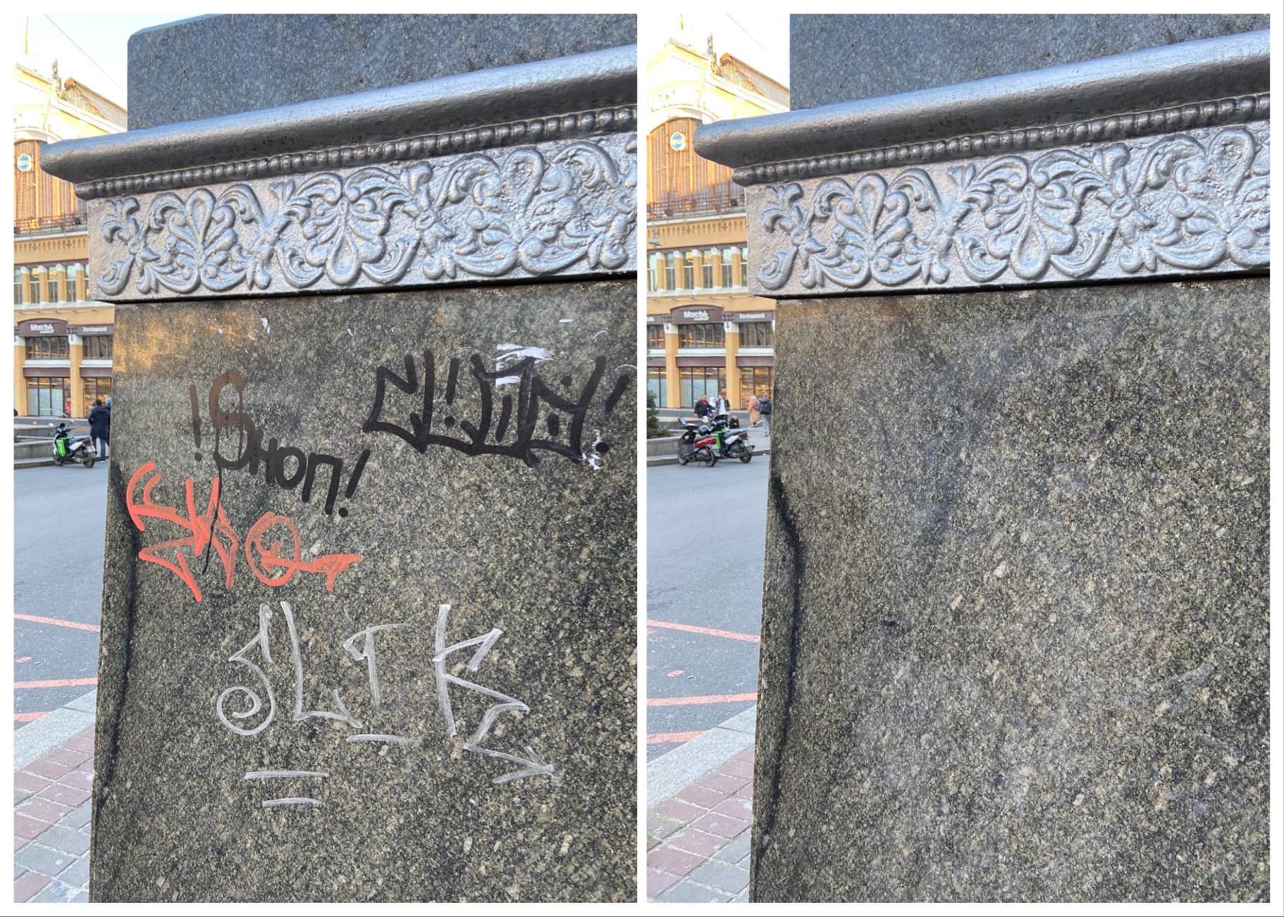 Команда розрахувала час, ловлячи необхідну температуру для видалення графіті/тегів. Також вони змогли підібрати оптимальні хімічні засоби для видалення написів з цих поверхонь.
