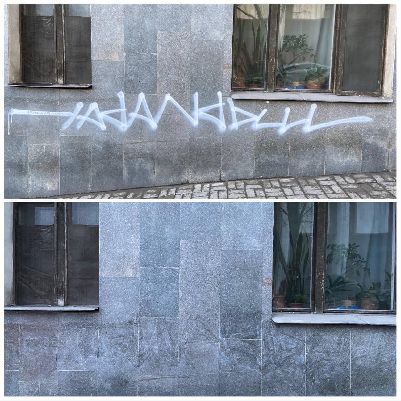 “Зараз ми шукаємо тих, хто надасть доступ до води на Хрещатику, 27, щоб змити графіті з фасаду будівлі”, – звертаються активісти по допомогу.