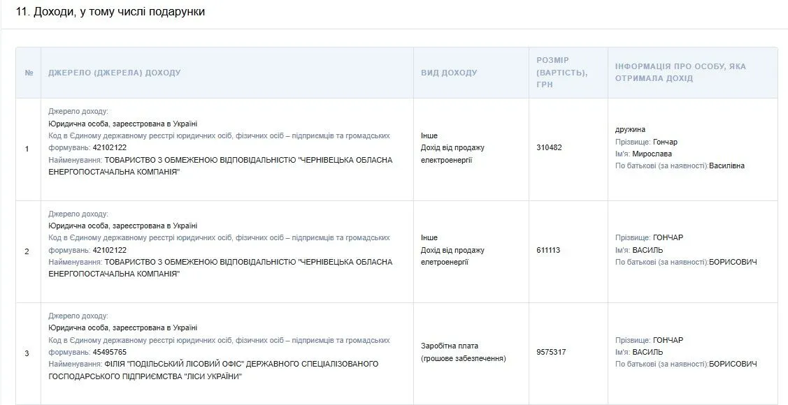 Директор "Подільського лісового офісу" ДП "Ліси України" Василь Гончар за 2025 рік задекларував 9 млн 575,3 тис. грн. Його "чистий" офіційний дохід на місяць у середньому становив 614,4 тис. грн.