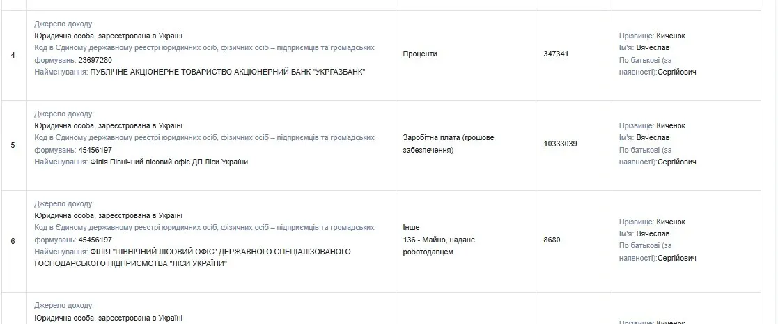 Очільник філії "Північний лісовий офіс" В’ячеслав Киченок отримав 10 млн 333 тис. грн заробітної плати у 2025 році. На місяць – це близько 663 тис. грн вже без податків.